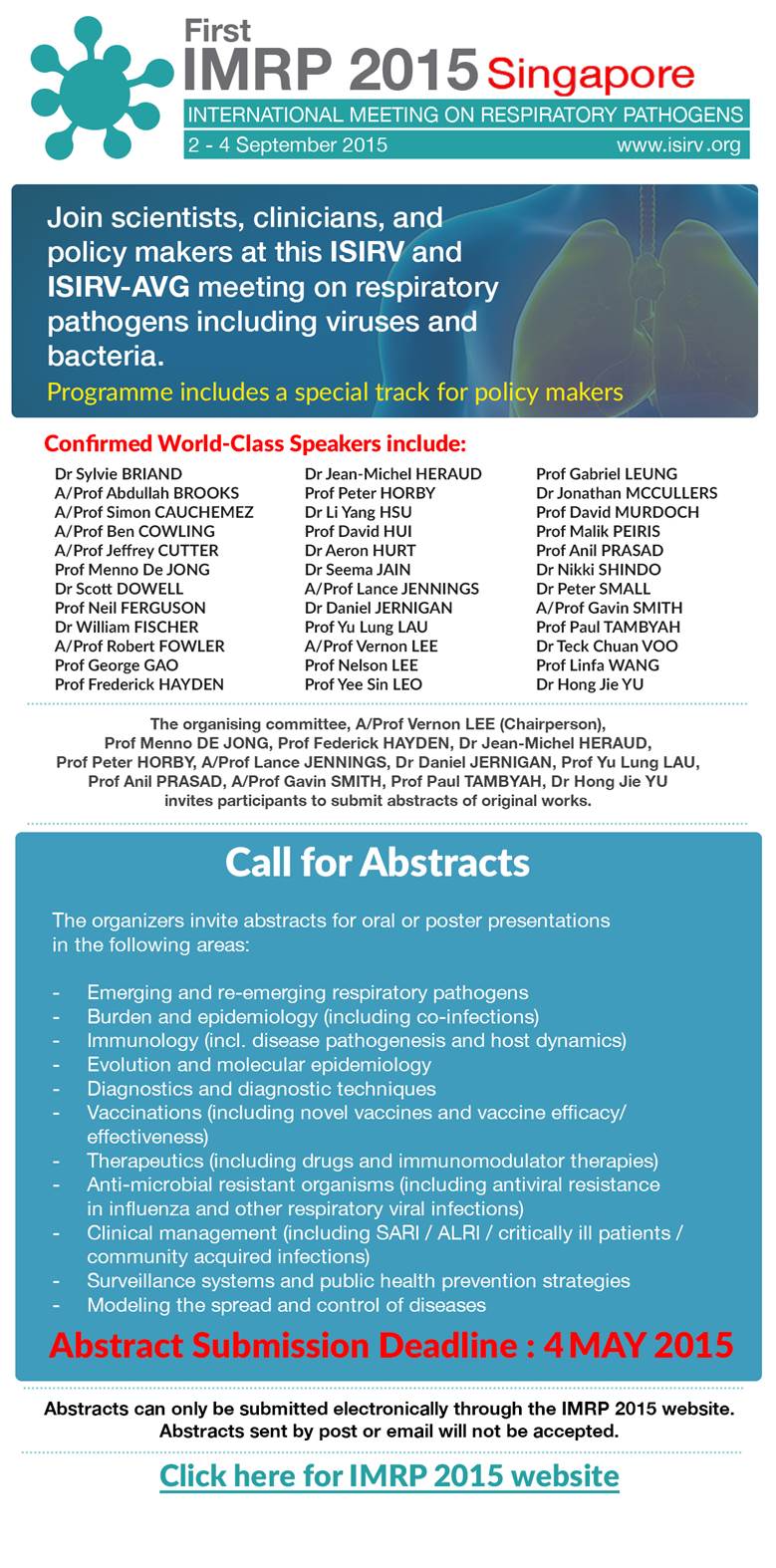 International Meeting on Respiratory Pathogens, Singapore, September 2-4, 2015