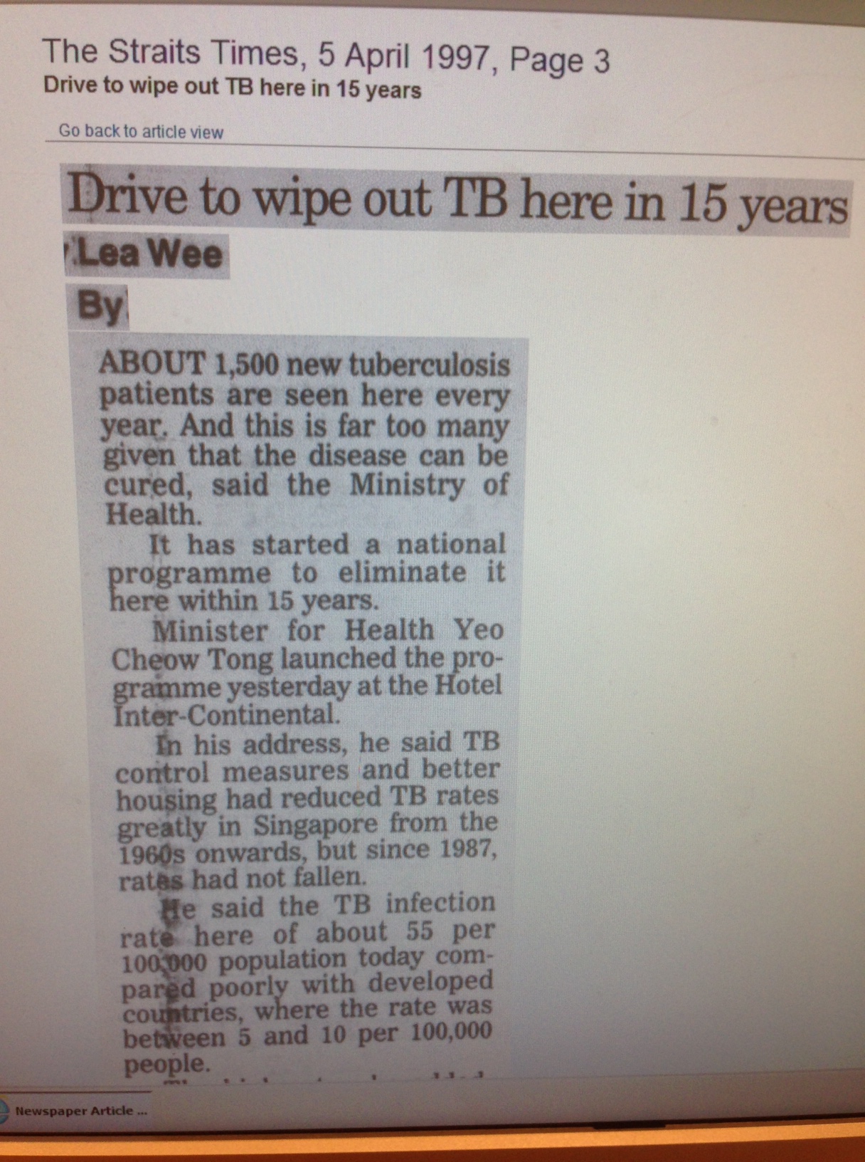 Tuberculosis, Historical News, Singapore (1962-1997)