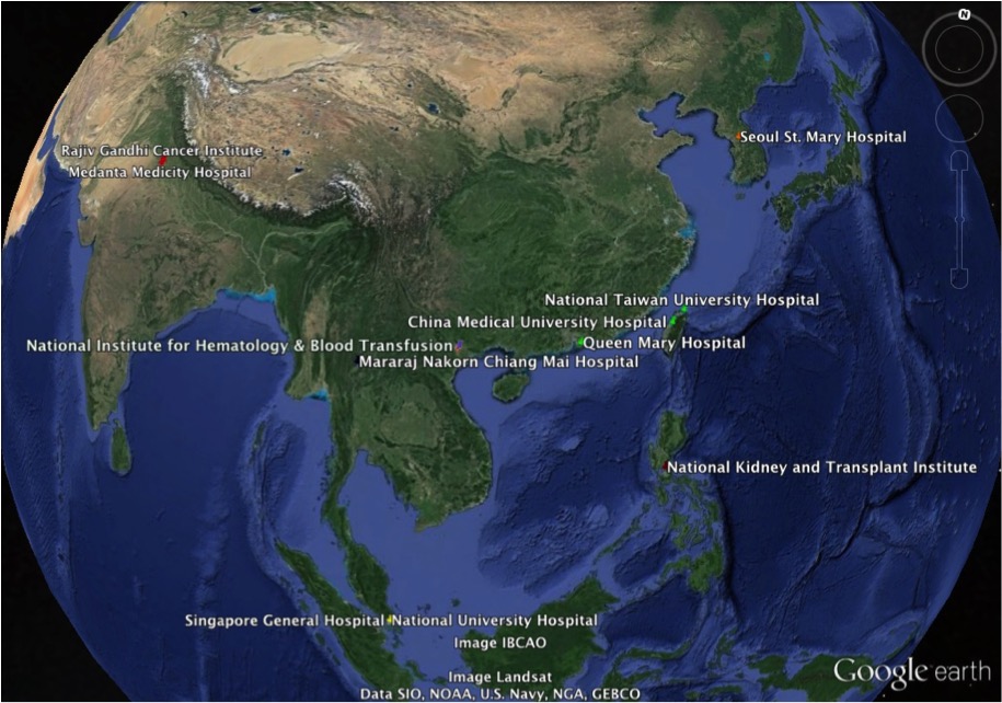 Naturally, with just eleven hospitals, the data we obtained were not going to be representative for most of the countries/regions except perhaps for Singapore (SGH and NUH together account for all the haematopoietic stem cell transplantations and intensive chemotherapy for leukaemia done in the public sector at the time of the study) and Vietnam (the National institute of Hematology and Blood Transfusion is the largest institute providing treatment for haematological diseases in Vietnam). But we were just happy to get participants from these countries and to get the study off the ground!