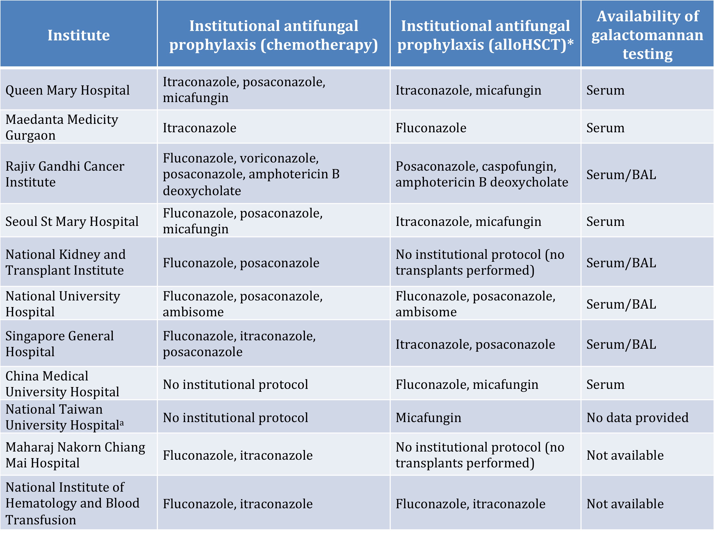 The short conclusion after two years is that the epidemiology of invasive fungal infections in patients with haematological disorders in Asia – at least in the institutions we sampled – is similar to other U.S. and European centres. Aspergillus spp. and Candida spp. are ubiquitous fungi, and are equally prevalent in tropical as well as temperate climates. The patients also go through a similar “path” in terms of hospitalisation for chemotherapy and/or haematopoietic stem cell transplantation. Unfortunately, the institutions that participated very different in terms of the size of the haematological units, capabilities, and treatment/diagnostic resources, which prohibits any real generalisability and limits the meaningful conclusions that can be drawn. But nonetheless, it still seems to be a useful snapshot of fungal epidemiology in the region.
