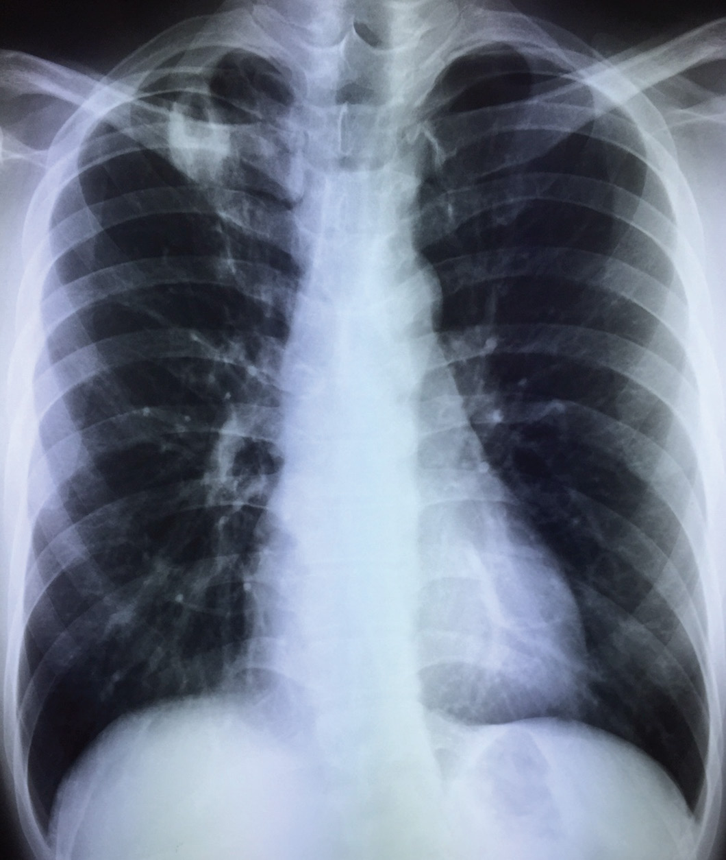 A young local man in his late 20’s, previously well, was found on pre-employment screening to have abnormal chest X-ray. He was otherwise asymptomatic.