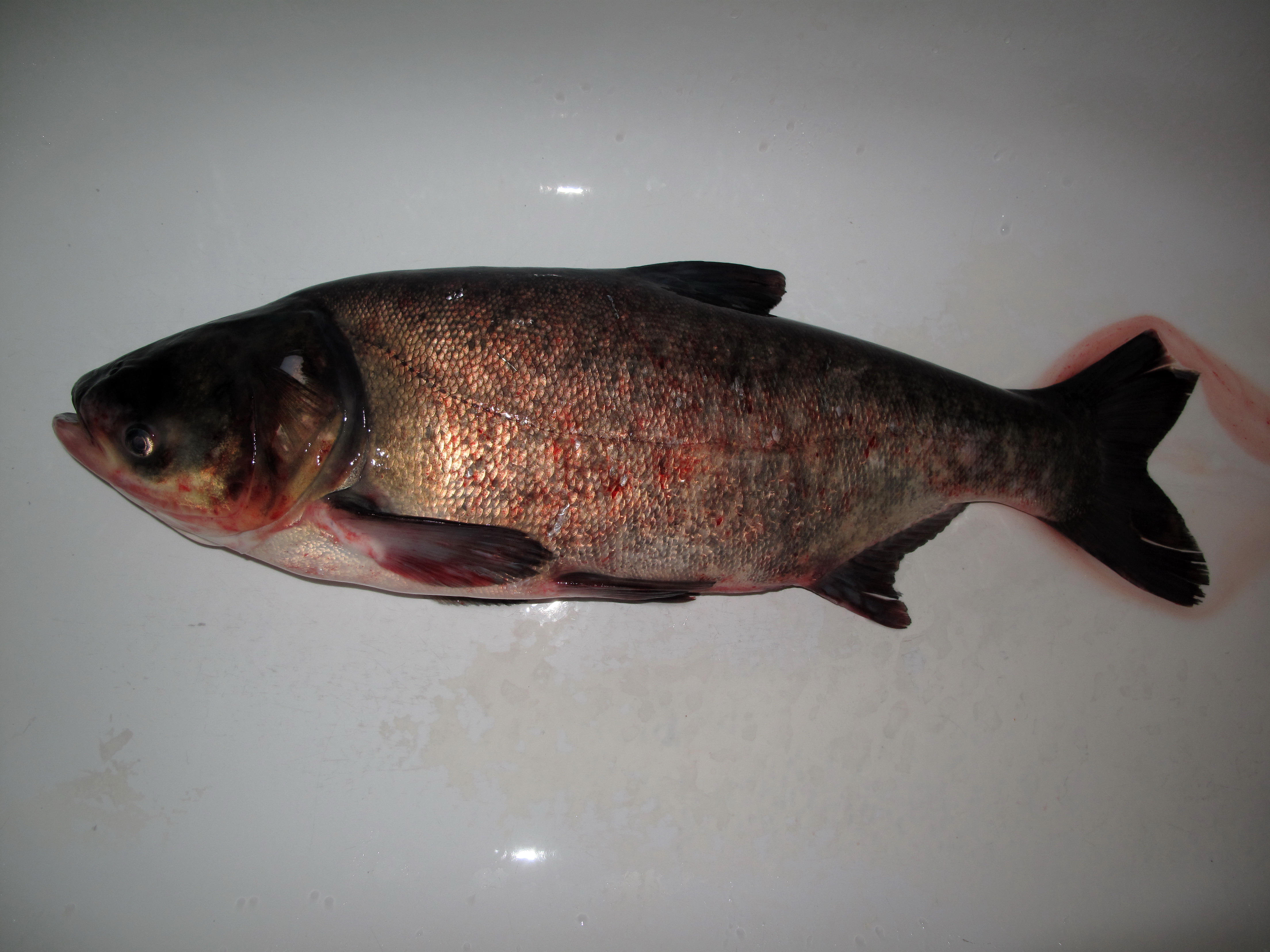 Some people have asked what is this “song he” or bighead carp – here is a picture from Wikipedia commons.