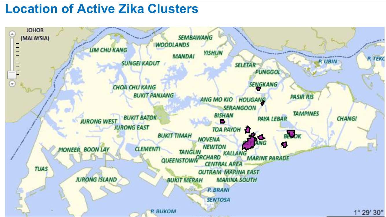 Zika clusters in Singapore, a screenshot from the NEA website last updated on 23 September