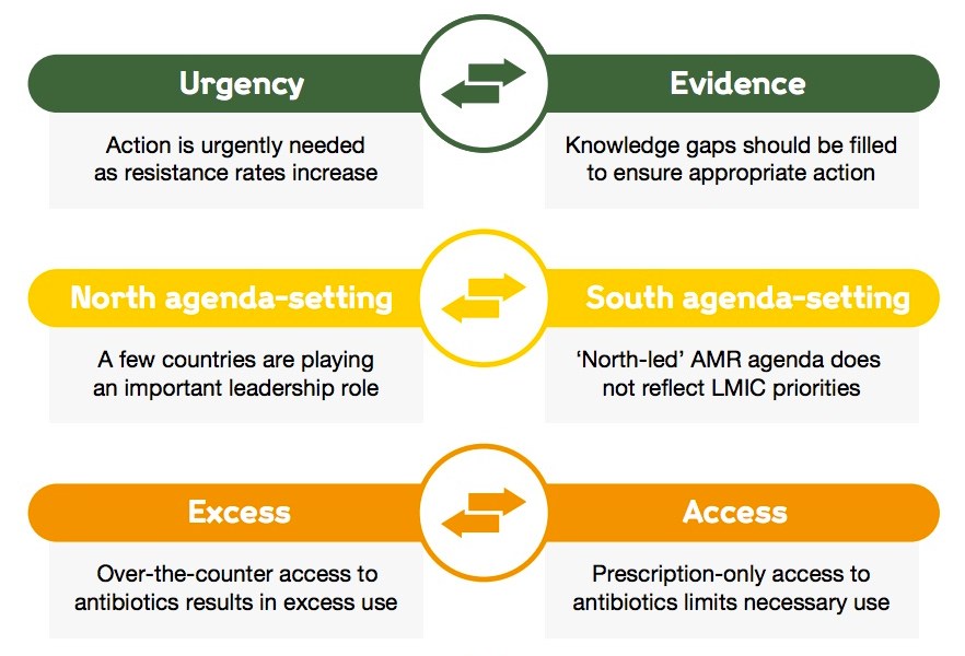 I am particularly taken by one of the figures that highlight the competing demands and politics caused by the need to limit as well as the need to use antibiotics. It well sums up the problem that we face today.