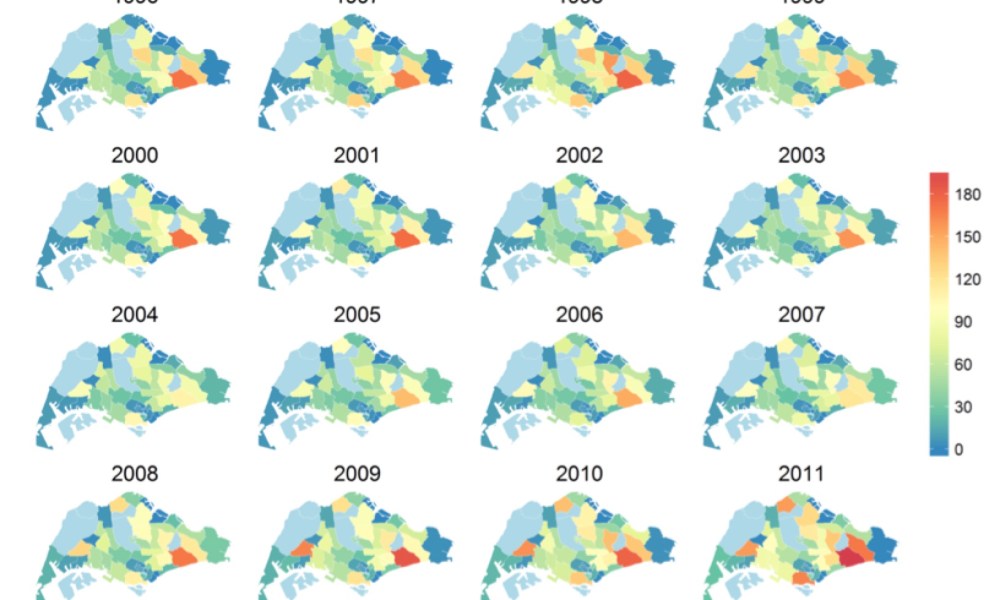 - The southeastern planning areas of Singapore saw consistently high concentrations of tuberculosis cases between 1995-2002, but there was rising spatial intensity in all areas between 2008-2011.
