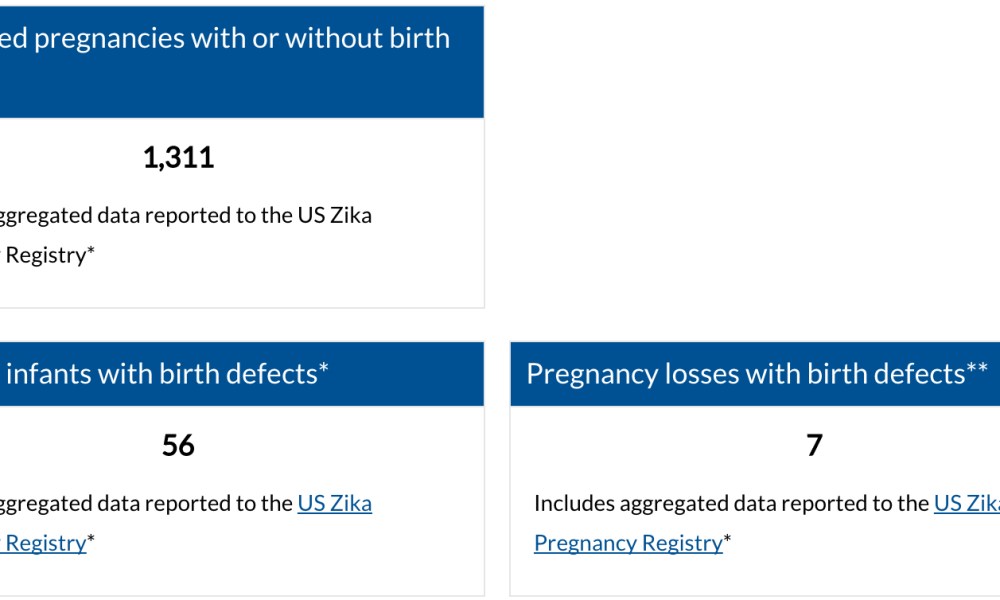 The data and results are also available online, more or less updated regularly, here. As of 28th March this year, there were 56 live-born infants with birth defects and 7 pregnancy losses with birth defects out of 1,311 completed pregnancies reported to the U.S. Zika Pregnancy Registry.
