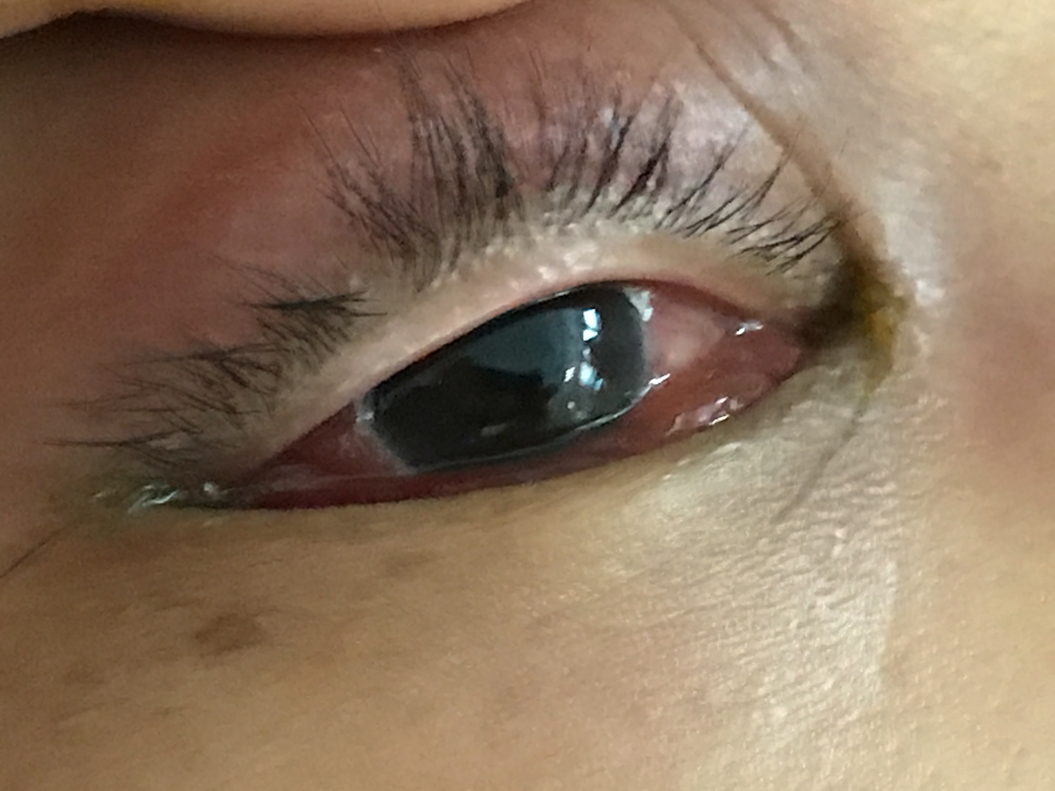 A middle-aged man with newly diagnosed diabetes mellitus presented with sudden onset right eye pain and tearing 2 days ago. This was associated with fever a day later, and he was unable to open his right eye fully because of the eyelid swelling. He had no history of trauma to the eye, no contact history of note, no significant occupational exposures, and no recent travel.