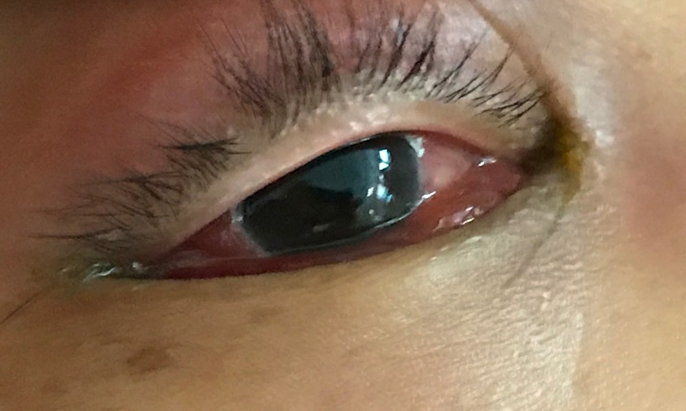 On examination, there was right periorbital oedema and erythema, but visual acuity and eye movements were preserved. There was seropurulent discharge from the right eye, and his temperature was 38.2 degrees Celsius. The rest of the clinical examination was unremarkable.