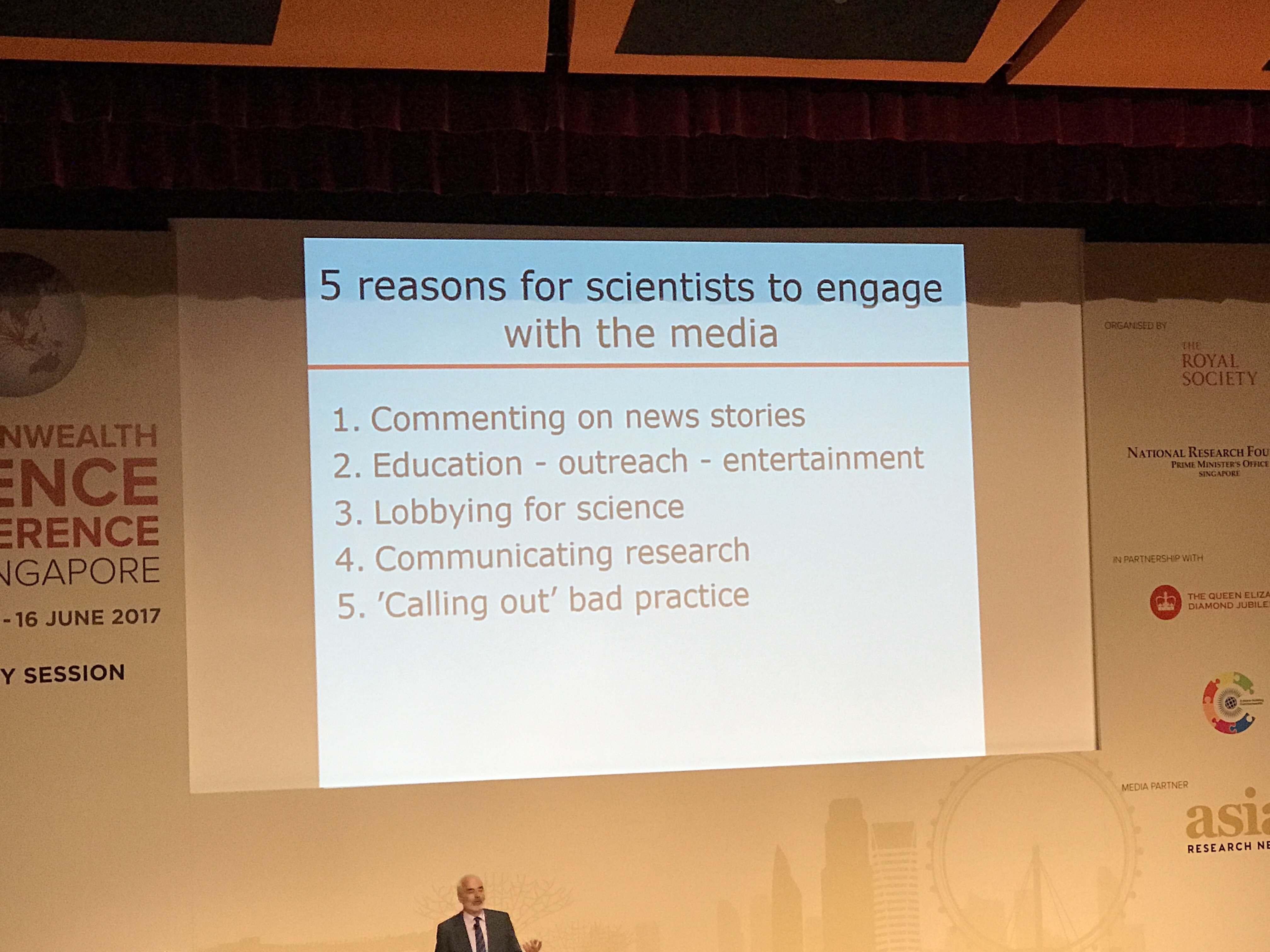 The second edition of the Commonwealth Science Conference is held in Singapore from 13-16 June, jointly organized by UK’s Royal Society and Singapore’s National Research Foundation. It is attended by over 400 scientists from over 40 states within the Commonwealth, with the majority of the presentations held at the Matrix in Biopolis. There are four main themes for this conference: