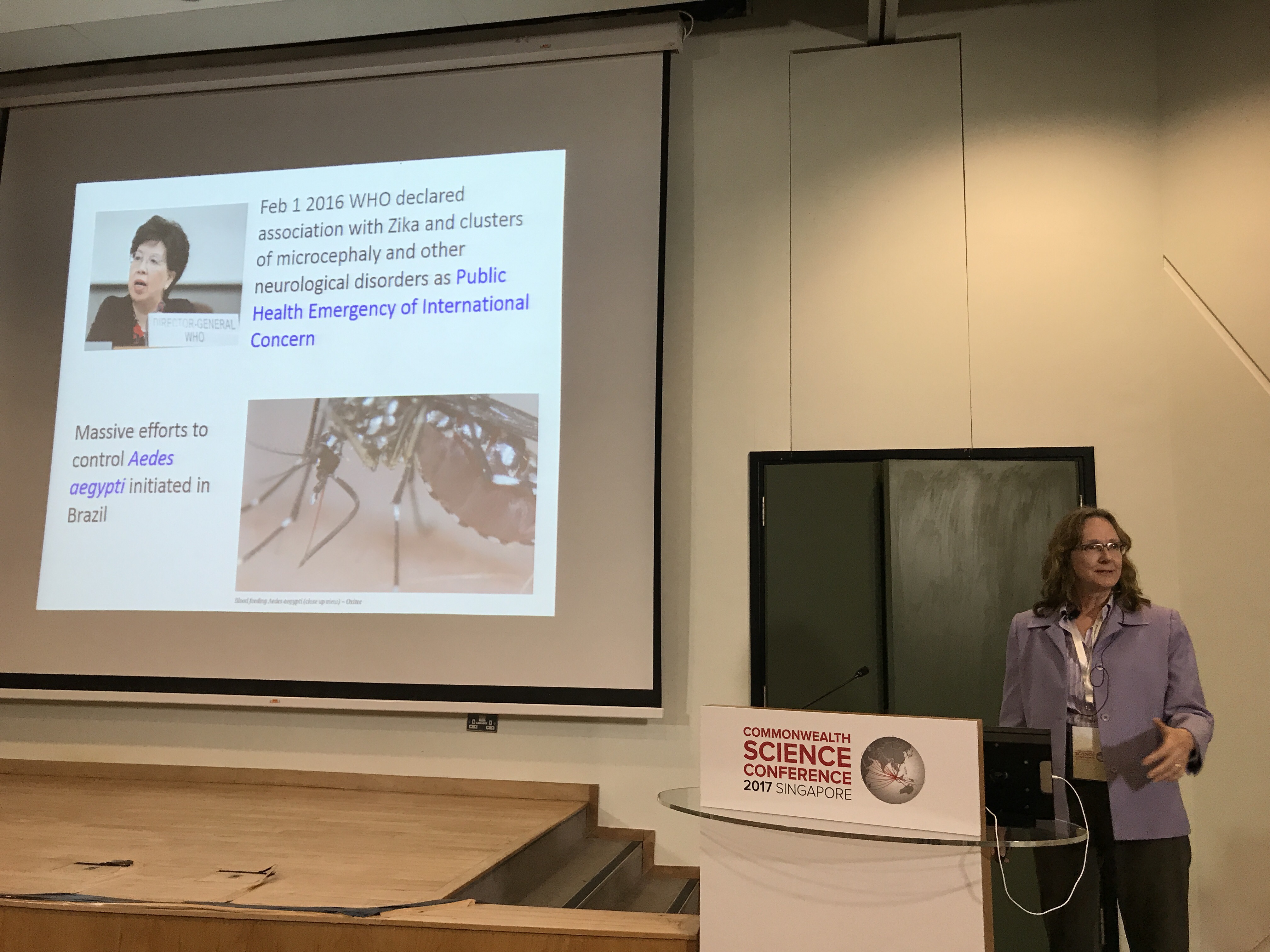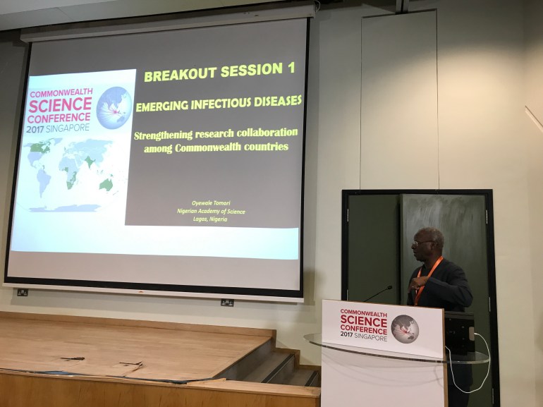 During the first breakout session on emerging infectious diseases, Prof Fiona Hunter (Canada) spoke about mosquito research and Zika, while Prof Oyewale Tomori (Nigeria) presented policy issues with regards to collaborative research in the Commonwealth – primarily questioning whether UK funding and support for other countries in the Commonwealth was declining because of newer partnerships with other European and Asian (non-Commonwealth) countries.