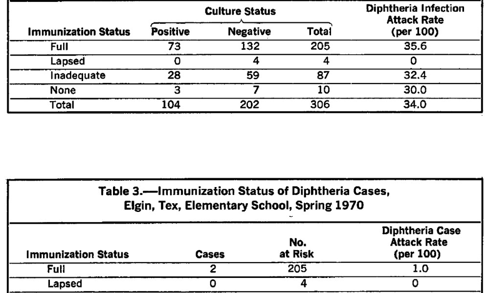 Screenshot from the paper describing the 1970 outbreak of diphtheria at an elementary school in Elgin, Texas, USA.