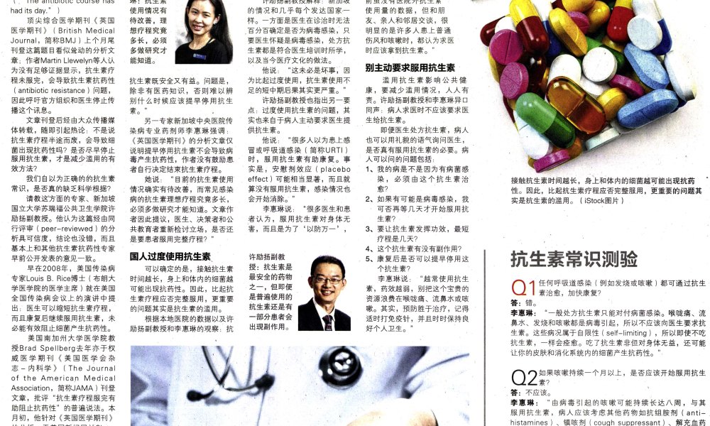 Scanned picture of the Lianhe Zaobao article on antibiotics, courtesy of Ms Winnie Lee.