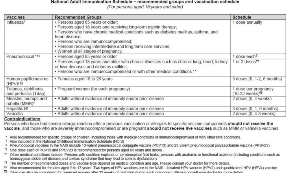 Singapore’s Ministry of Health (MOH) announced the National Adult Immunization Schedule (NAIS) yesterday. This is a welcome extension of the National Childhood Immunization Programme (into adulthood), and the amendment to allow the use of Medisave (Singapore’s compulsory national medical savings scheme) for these vaccines (up to SGD400 a year) will facilitate take up of the NAIS.