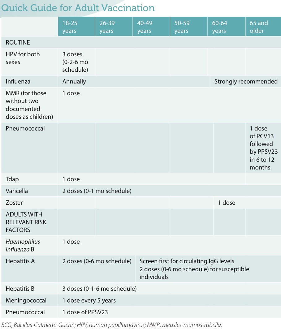 The important public health message here is that vaccines are not just for children, and even adults will benefit from them – if the adults have never been previously vaccinated (chickenpox, Hepatitis B, etc), if the vaccine has only short term efficacy (i.e. influenza), or in those cases where the childhood vaccination effectiveness can wear off over time (i.e. diphtheria and tetanus).
