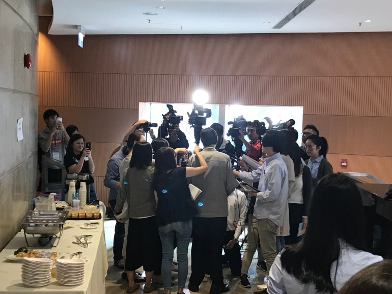 Queuing up to collect entry passes for the conference, which was held at the university’s Moot Court.