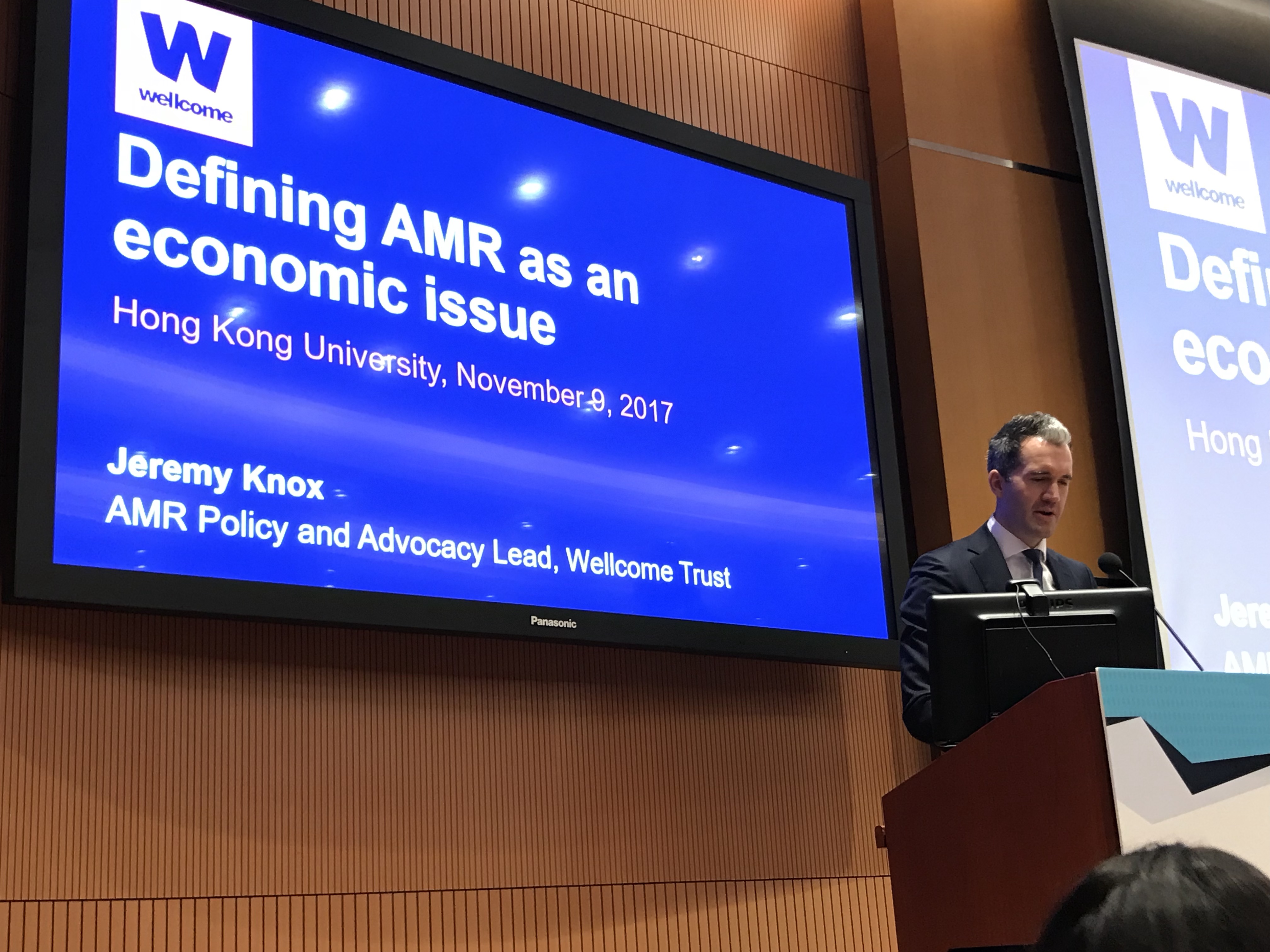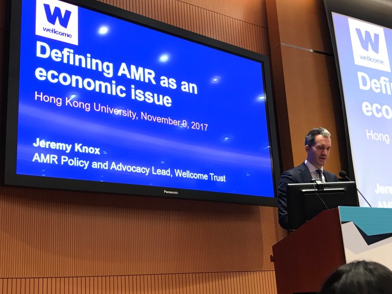Mr Jeremy Knox, policy lead for drug-resistant infections at the Wellcome Trust, presenting on how AMR defined as an economic and developmental issue had propelled it towards recognition as a major problem by global leaders.
