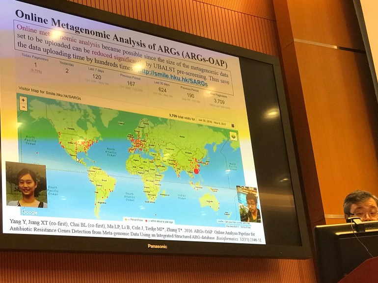Prof Zhang Tong from the Department of Civil Engineering, HKU, describing metagenomic work on environmental samples, identifying antimicrobial resistance genes.