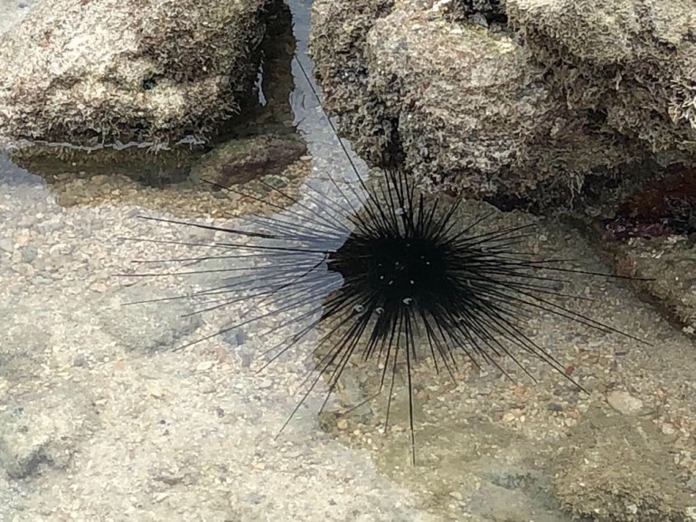 A young previously well man presented with fever, left lower limb pain, erythema and swelling for 3 days. A week ago, he had stepped on a sea urchin while at a regional beach resort, which had resulted in several penetrating injuries to his left foot. He had self-administered first aid at that point, removing several black spine fragments and washing the wounds with water.