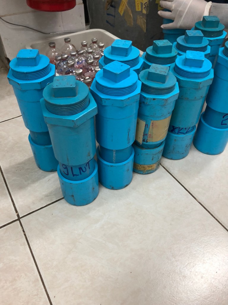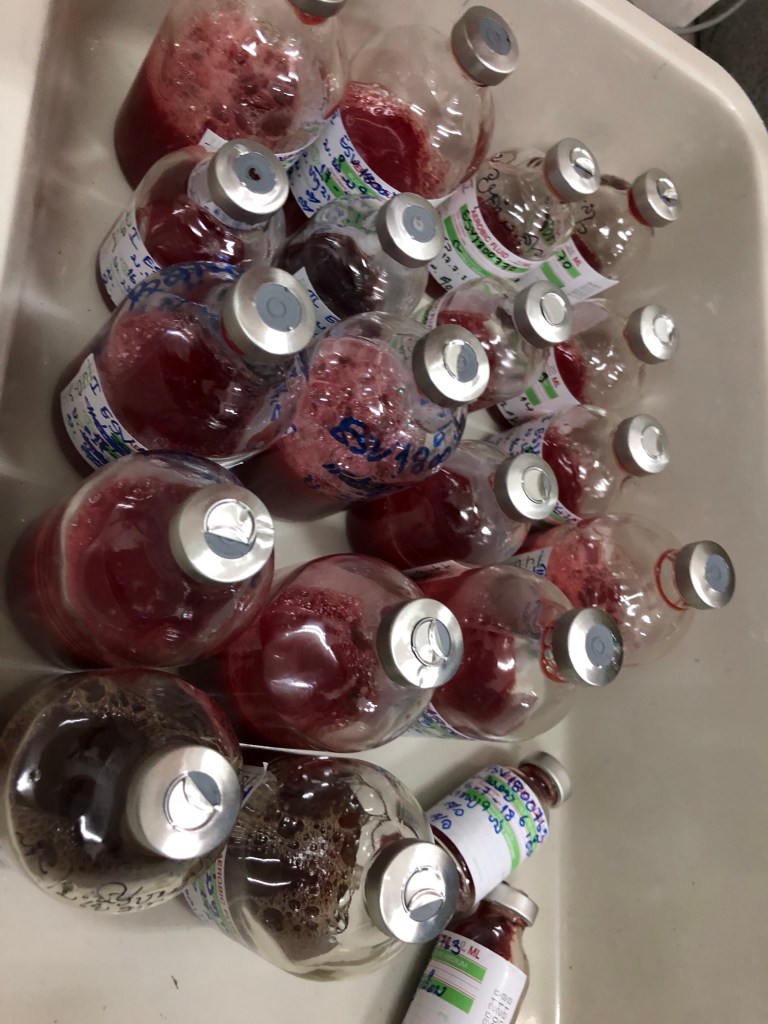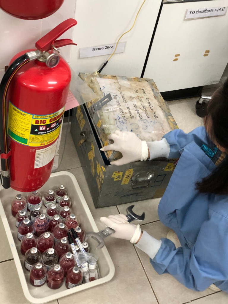 Blood cultures from several provincial hospitals are also sent to LOMWRU for processing, held in PVC containers (made from plumbing) which are placed in locked boxes and delivered (free) by bus drivers.