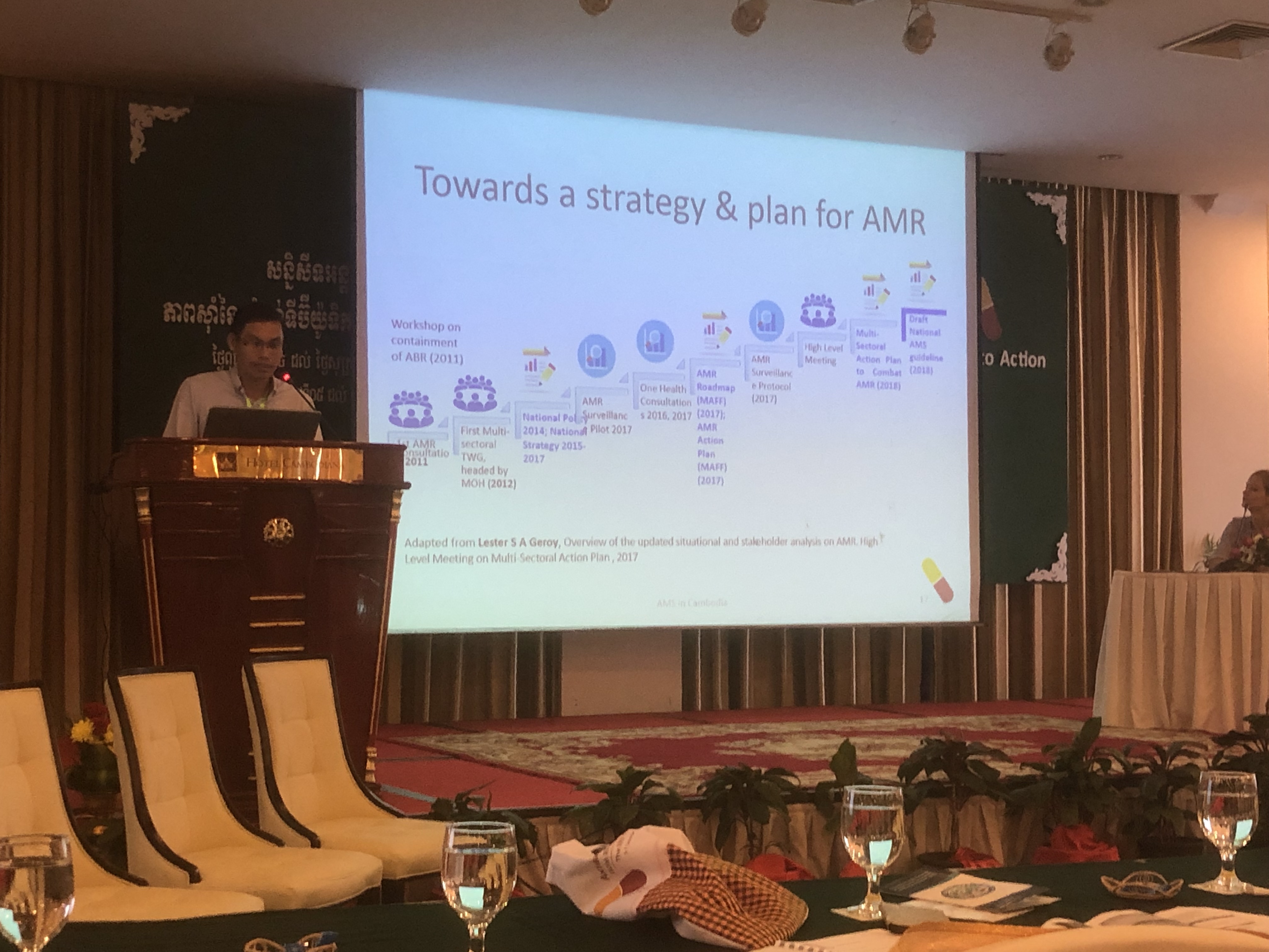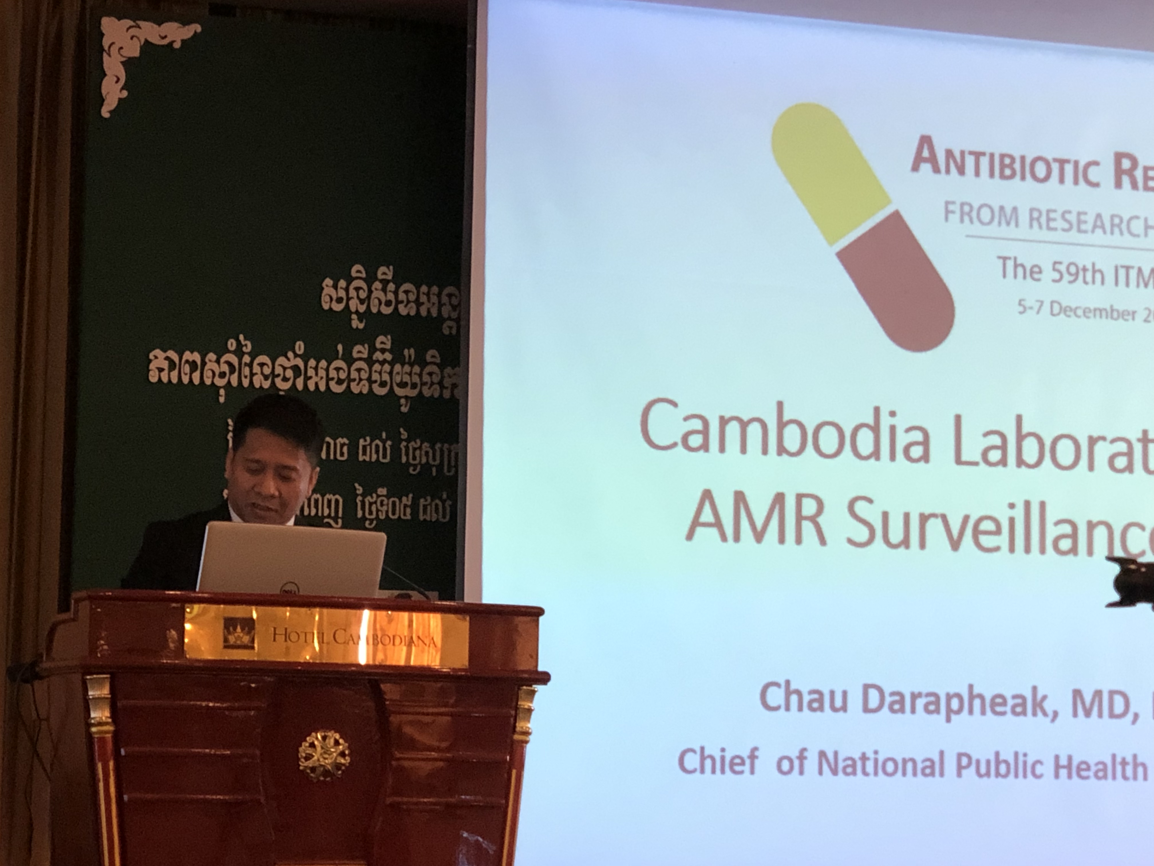 The director of the National Public Health Laboratory, Cambodia – Prof Chau Darapheak – presenting on the results of sentinel surveillance of AMR from different hospitals in Cambodia.