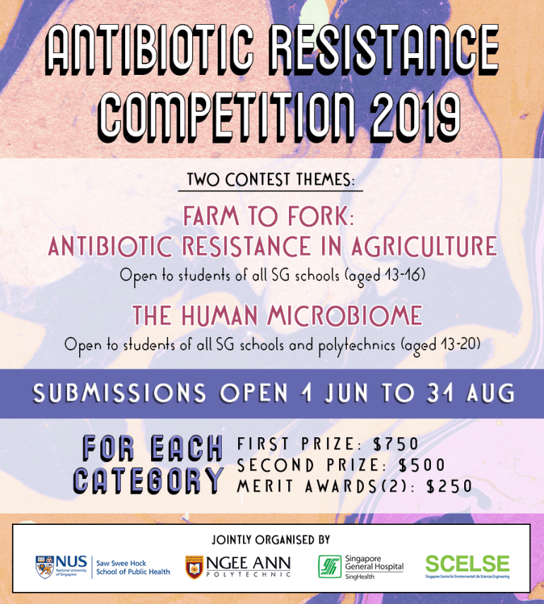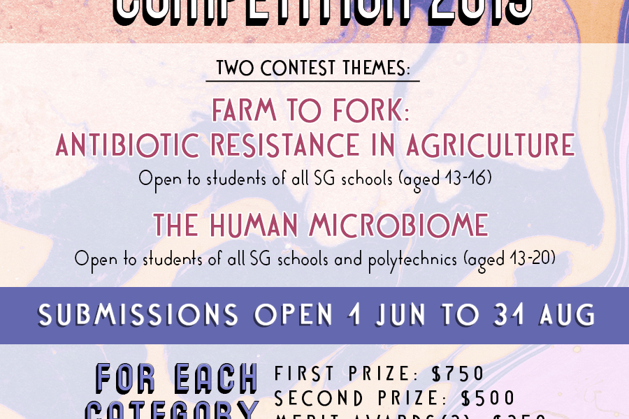 Contest details are available here (AMR) and here (Microbiome). All students of schools in Singapore are welcome. All essays to be submitted by 31st August, with prizes awarded during World Antibiotic Awareness Week in November.